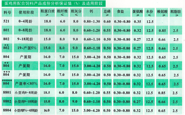 1.含有飼料藥物添加劑、高效促進生長劑、復合酶、植酸酶等,可保證蛋雞正常生長;